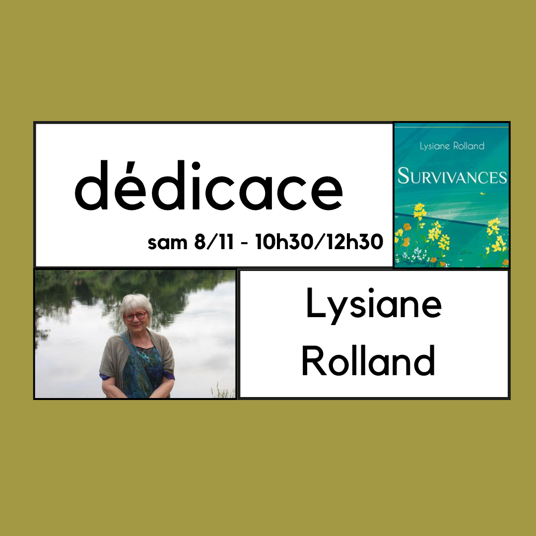 Lysiane Rolland, native de Saint Louis de Montferrand,  sera présente le samedi 8 novembre de 10h30 à 12h30 pour dédicacer son nouveau livre Survivances, paru aux éditions Sabine Dewilde.